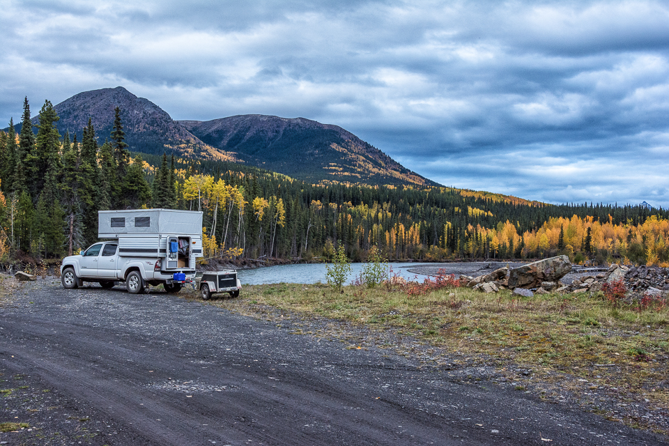 Spatsizi Wilderness by a fellow I camped next to in Alaska a few weeks ago. He went on and on about its lack of people, ample wildlife and beautiful scenery.Having looked at it on my map prior to hearing about it, I had kind of written it off as it didn't show any roads going in. For some reason, my map didn't show the road he was telling me about. He told me what to look for and sure enough I located it. This is one of those areas where you have to look for it. The road, which is basically an old railroad grade, is dirt and in poor conditions in places and not well marked off the main. Four-wheel drive is a must in here especially if the road is wet. A real possibility exists of becoming stranded should one of the stream crossings become impassable on your drive out. It's about 60 miles into the end of the road and then you come back out the same way. It's a beautiful drive and I did see one black and one grizzly while here along with a couple of moose. No pictures, I've posted enough bear and moose pictures. I didn't get anything really good anyway as both of them were spotted with hardly any light left. I only encountered two people total while in the area. I ended up spending two nights and should probably have spent more, but the nights were getting damn cold, and to be honest, I was getting a little road weary. I really didn't take many pictures other than the Spatsizi Wilderness area once on the Cassiar Highway so I'll just post up the few I did take and wrap up the trip.
