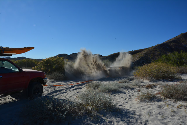 After visiting Coco, I ended up bumping along the preferred "dirt road" before breaking out on the pavement near Gonzaga Bay where I camped for the night. Following day, I made the crossing back over into the states at Mexicali. From there it was one more night of camping out in the desert on the US side where I needed to retrieve my buried pistol. I travel with a pistol while in the states (no...I'm not an armed nut job) and of course didn't take it into Mexico as that will land you in big trouble, real quick. I simply wrap the pistol in an oiled cloth, double bag it in gallon zip lock bags, mark the spot with GPS coordinates and bury it. Thousands of desert acres to choose from so it's not a problem finding a remote site. Gun shops in the area want to charge you for storing it and since it's not some expensive piece, I just go the cheaper route and bury it. Plus I can retrieve it whenever I cross back over and not have to wait on someone to be open. As long as no one sees you digging your hole it should be there when you get back.